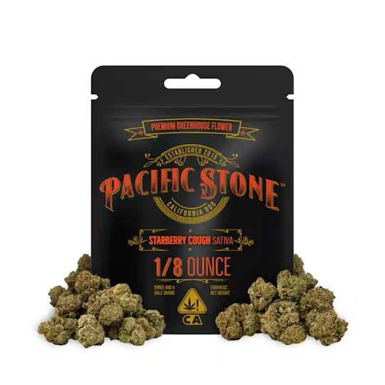 One hundred percent Premium California Cannabis that comes in four different sized pouches: 1/8th (3.5G), 1/4th (7G), ½ ounce (14G), and 1 ounce (28G). Our Dutch coastal greenhouses provide a consistent and controlled environment for our flower to thrive. A smile and consistent smoking experience in every bowl of Pacific Stone’s Premium California Flower. We only sell what our Pac Stone team grows and cures to bring you farm-direct California cannabis at an affordable price.
