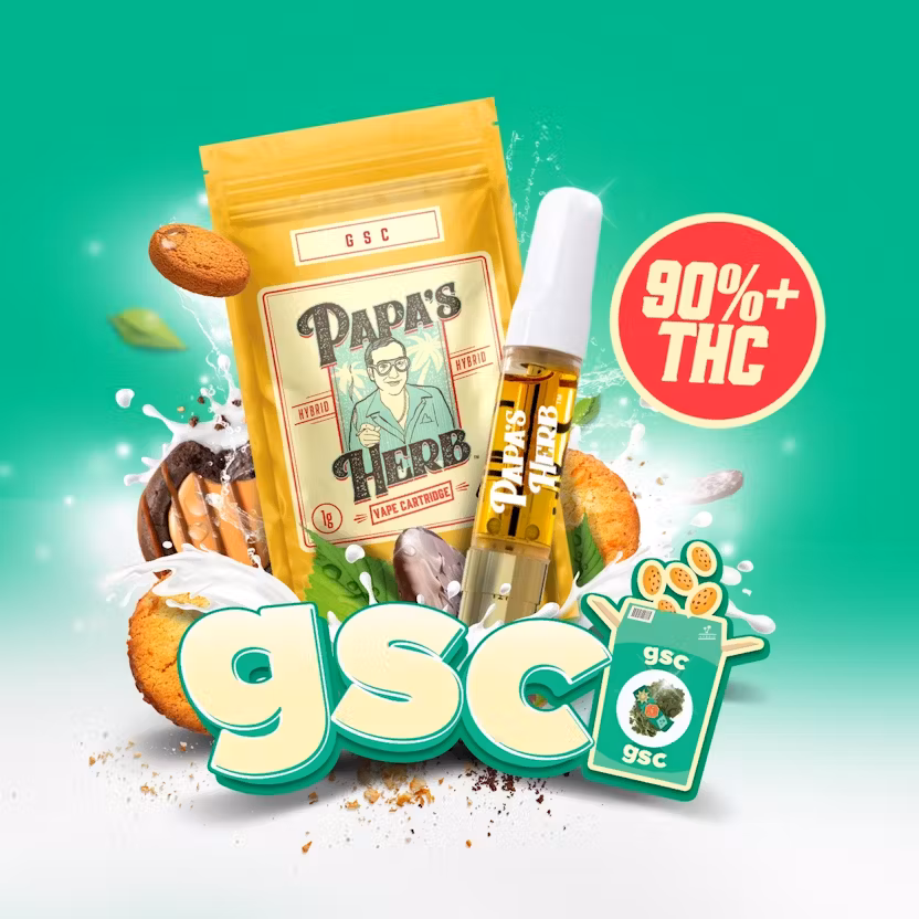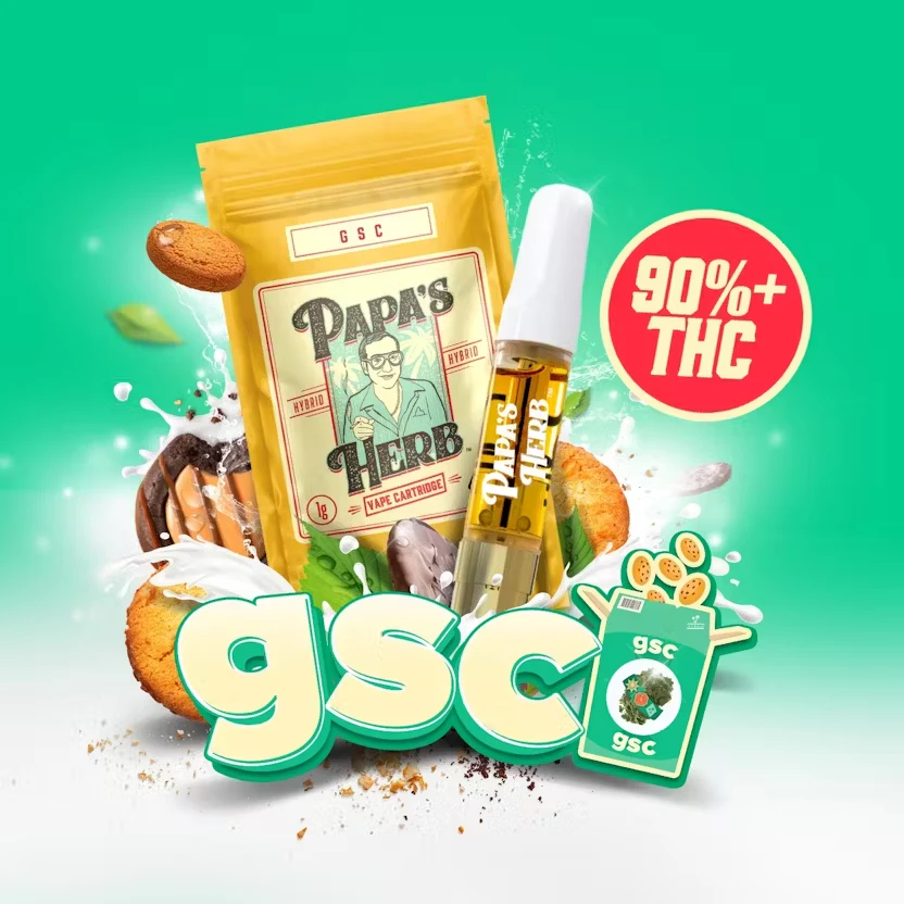 Papa’s Herb GSC (Girl Scout Cookies) vape cartridge features the legendary hybrid strain known for its sweet, earthy aroma and powerful, well-balanced effects. Expect rich flavors of baked dough, subtle mint, and a hint of spice in every smooth draw.
