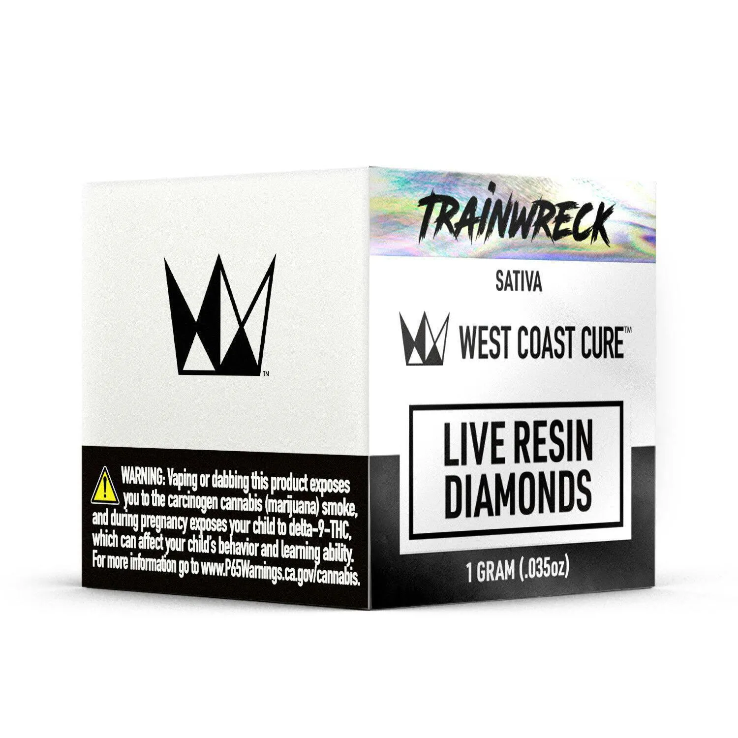West Coast Cure’s Trainwreck Live Resin Diamonds are a Sativa-leaning expression of the cultivar. Produced from hand-selected batches of the whole plant, fresh frozen flower, the THCA crystals in sauce express a sweet and saccharin nose of pine, lemons, wood, and herbs. Creating an energized and positive headspace, its effects are uplifting, happy, and euphoric.
